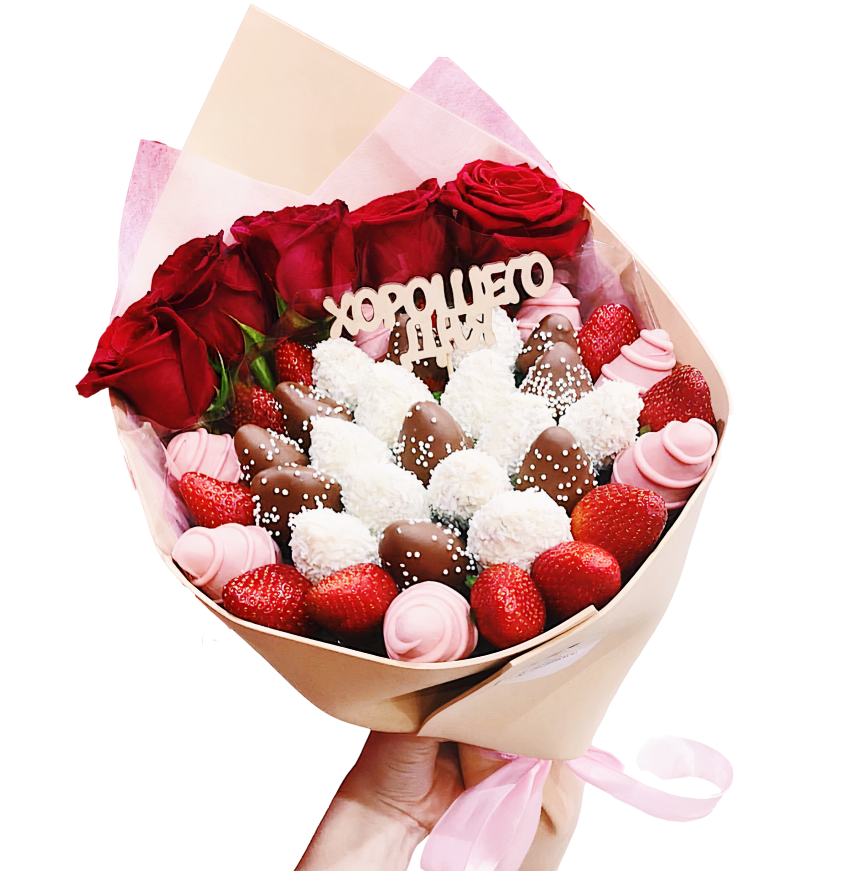 Заказал я значит своей даме букет из клубники. Немного переживал за качество, так как девушка с очень высокими требованиями. Хорошо дали расслабиться слова менеджера, что мне не о чем переживать и каждый день ребята делают по 5 заказов минимум. И правда, фото прислали до отправки, курьер позвонил, девушка в восторге, фотки пилит в инсту и меня боготворит ща оригинальный сюрприз